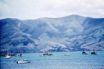 Boats on Akaroa Harbour from beside Main Wharf on Beach Road.