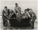 Wainui Primary School children and US Army combat engineers in an assault boat, Akaroa Harbour.