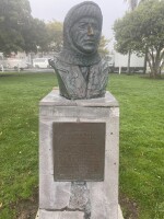 A view of the Frank Worsley bust situated near the waterfront in Akaroa. Frank Worsley was born in Akaroa and was a member of Ernest Shackleton's 1914-1916 Imperial Trans-Atlantic Expedition to Antarctica, where he captained the 'Endurance'.