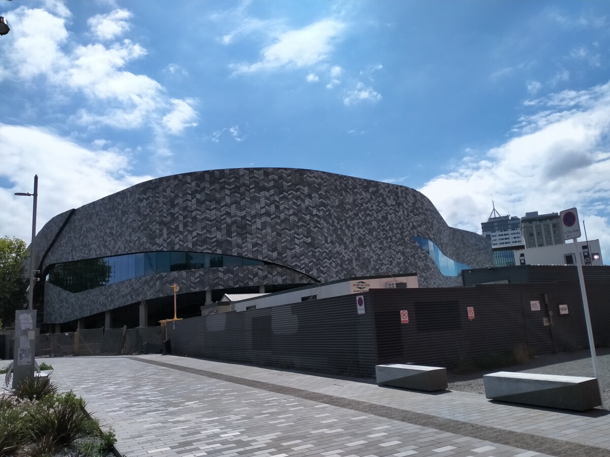 Christchurch Convention Centre, Te Pae, under construction as seen from Oxford Terrace.
