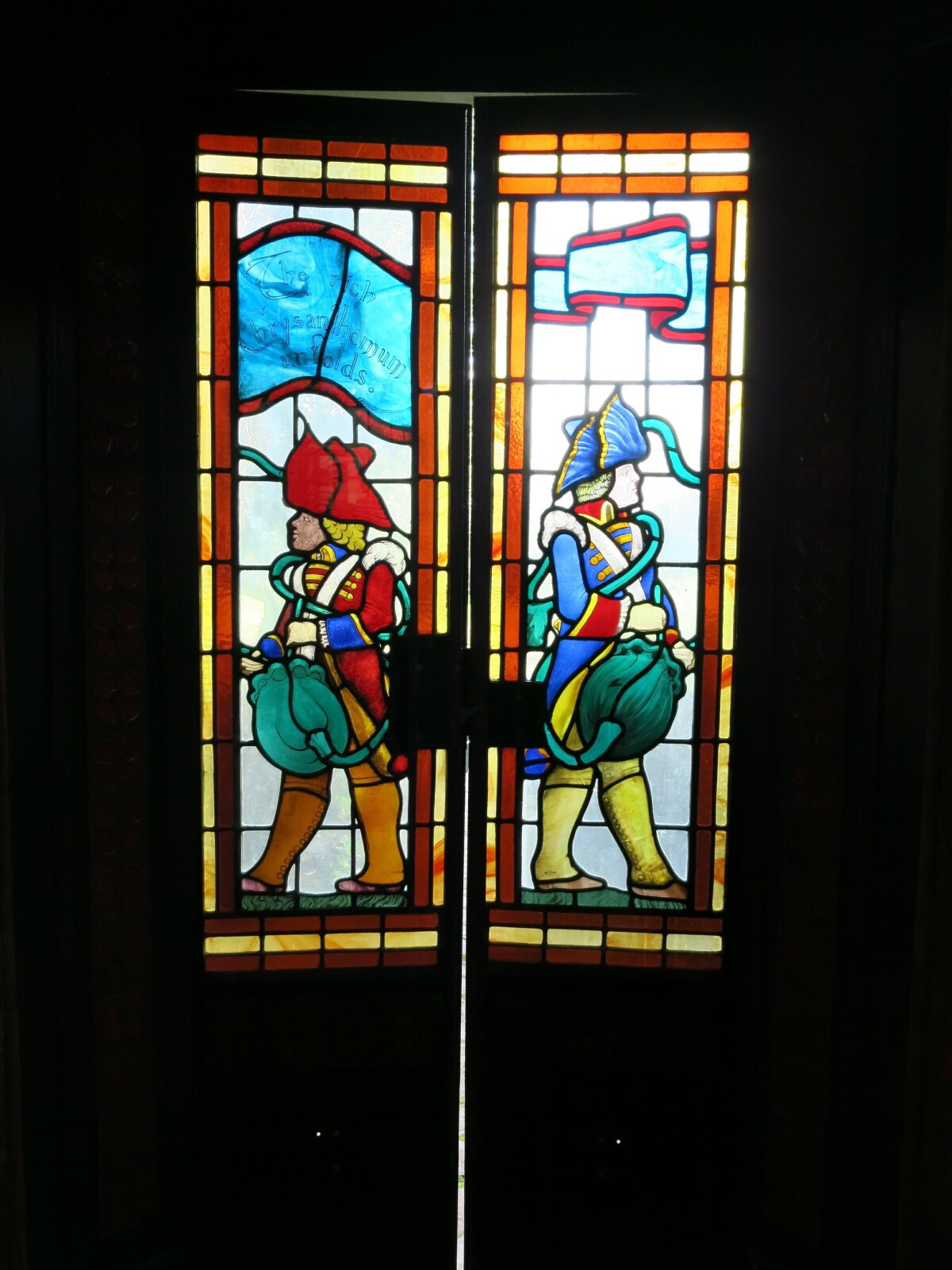 Stained glass painting in the Sheilah Winn Gazebo at Mona Vale designed by David Butcher and windows by Graham Stewart.