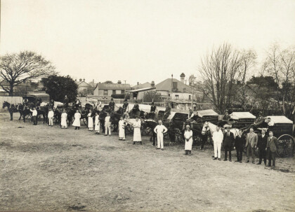 Line-up of Stacey and Hawker bakeries’ horse-drawn delivery ...