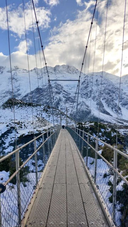 Hooker Valley bridge in winter