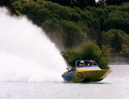 Jetboat racing down the Rakaia River