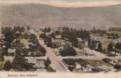 Governors Bay, with the jetty stretching into the sea, its span broken in places and some piles missing.