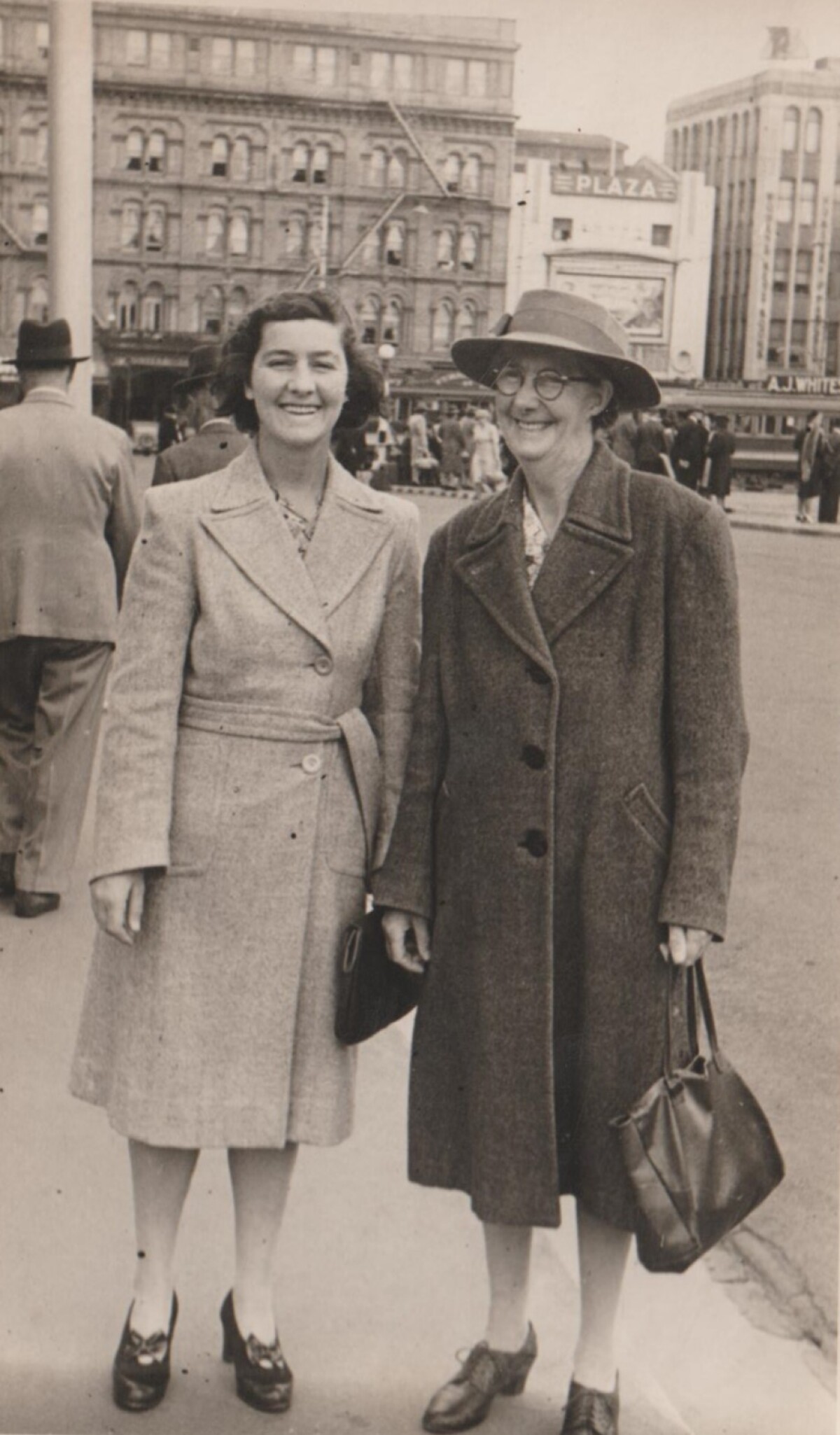Contributor's note: My mother (Valma Luscombe) and grandmother (Elizabeth Windsor) together outside the Plaza movie theatre and United Service Hotel.