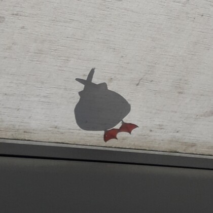View of a seagull standing on a canvas roof at Sumner Cafe. ...