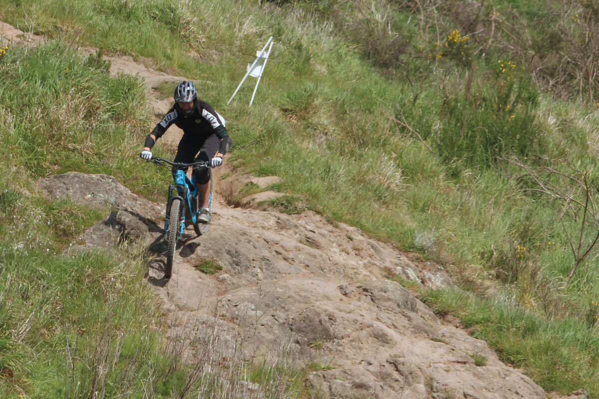 Contributors note: "Mountain bike rider negotiating a rocky outcrop at Christchurch Adventure Park Summit Road Connector"