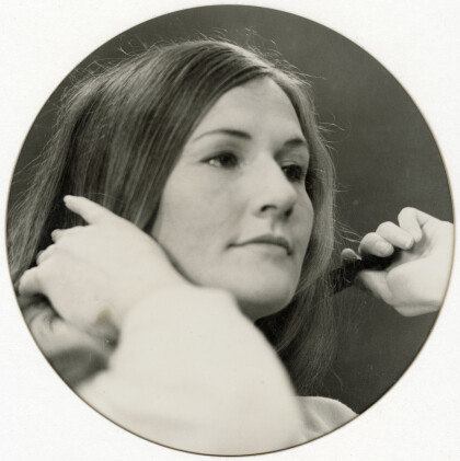 Portrait view of actor, Jennifer Barrer as she is combing her ...