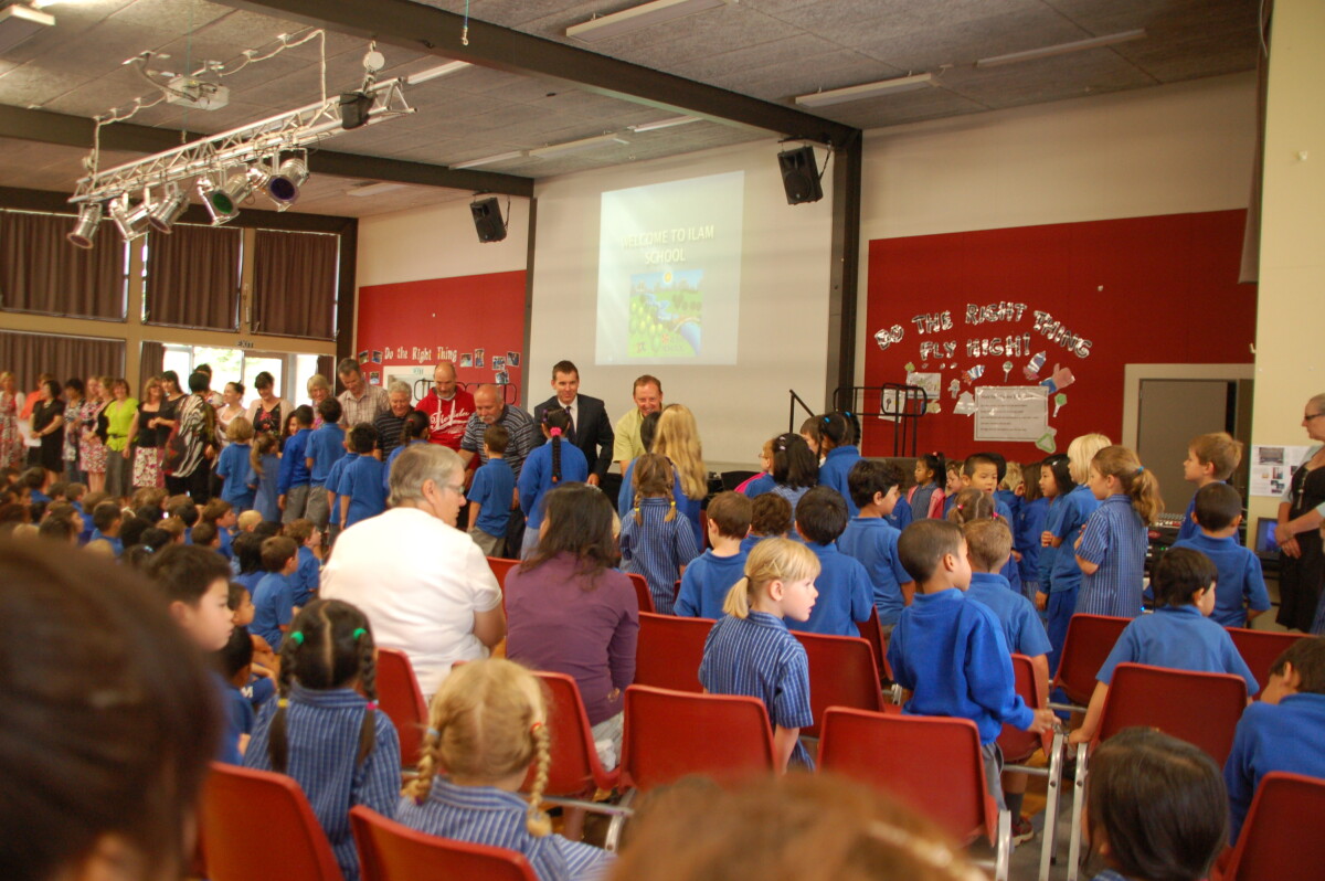 Contributor's note: Attending welcoming ceremony at Ilam School at my daughter's first day at school after we migrated to New Zealand. Principal Paul Dolan welcoming new students.