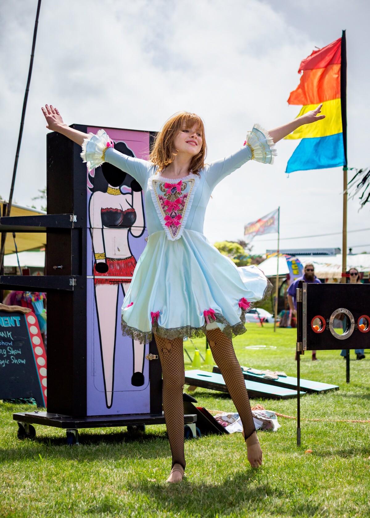 Dylan Daisy Ashton performing magic tricks at The Extravaganza Fair in the Redzone.
