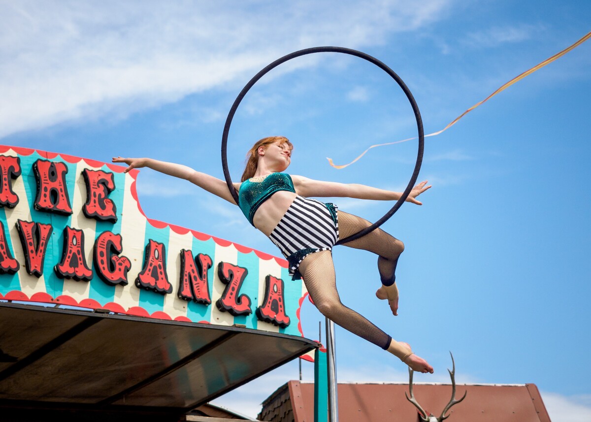 Dylan Daisy Ashton performing on the Lyra at The Extravaganza Fair in the Redzone.