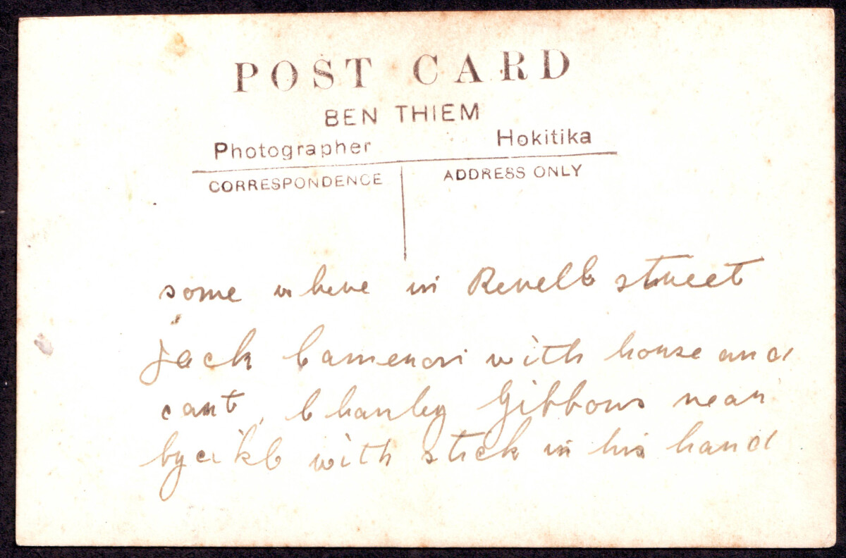 Printed annotation reads: Ben Thiem Photographer Hokitika.