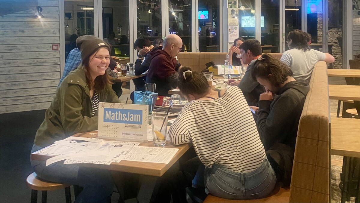 Contributors note: "Christchurch MathsJam meetup at the Good Home Ferrymead, September 2022. MathsJam has been running in Christchurch since 2017, meeting on the third Tuesday of each month. It is open to all adults who want to meet up in a pub and solve puzzles / do recreational mathematics!"
