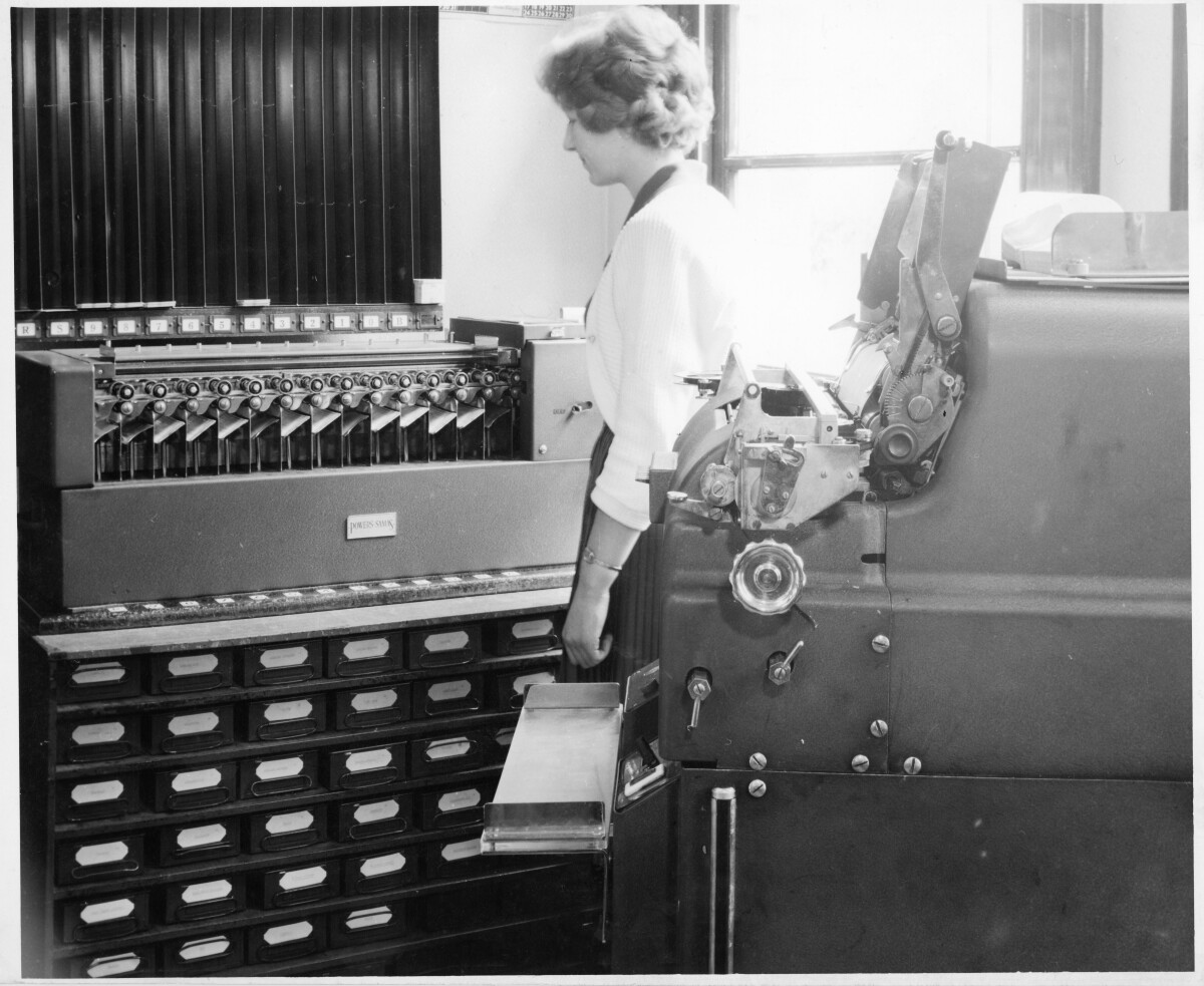 Contributors note: "Christchurch 1960s. Several women shown working with various several different types of shop and office machines."