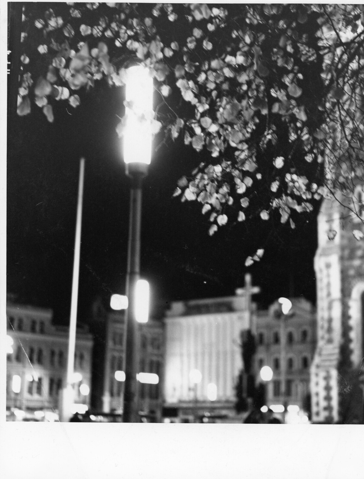 Contributors note: "Christchurch Cathedral Square, on a wet evening. Part of Cathedral and other buildings are visible through the leaves of a tree. In the middle of the photo is the Citizens (or the Soldiers) War Memorial."
