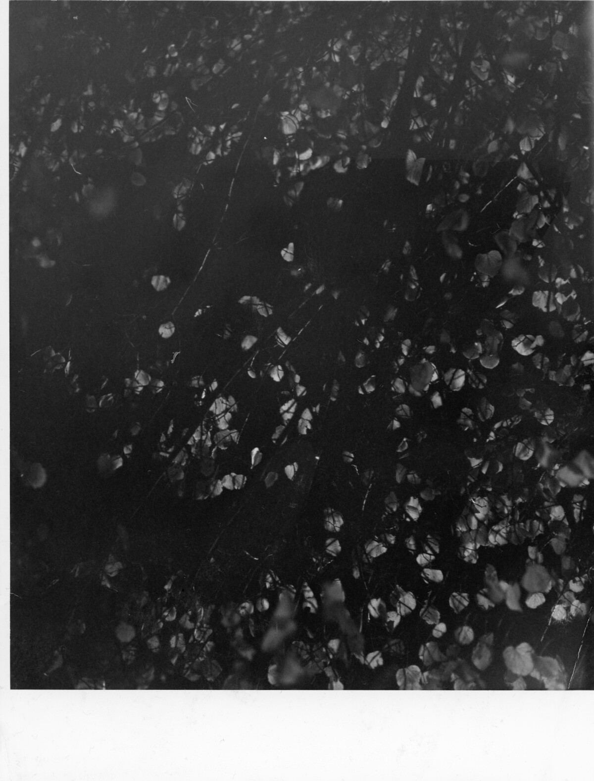 A view up through the tree canopy in Cathedral Square, on a wet evening.