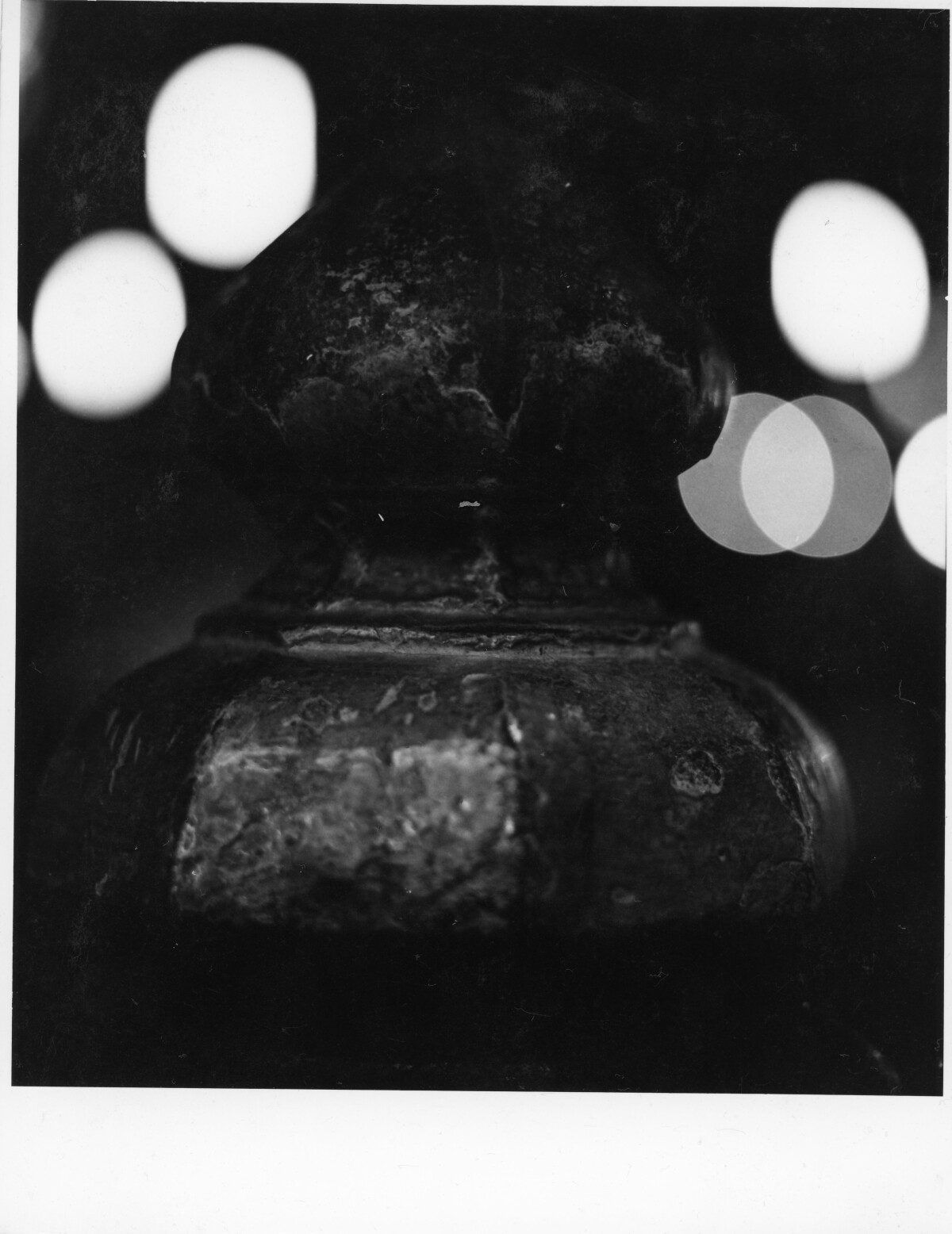 Close-up view of a decorative finial in Cathedral Square on a wet evening.