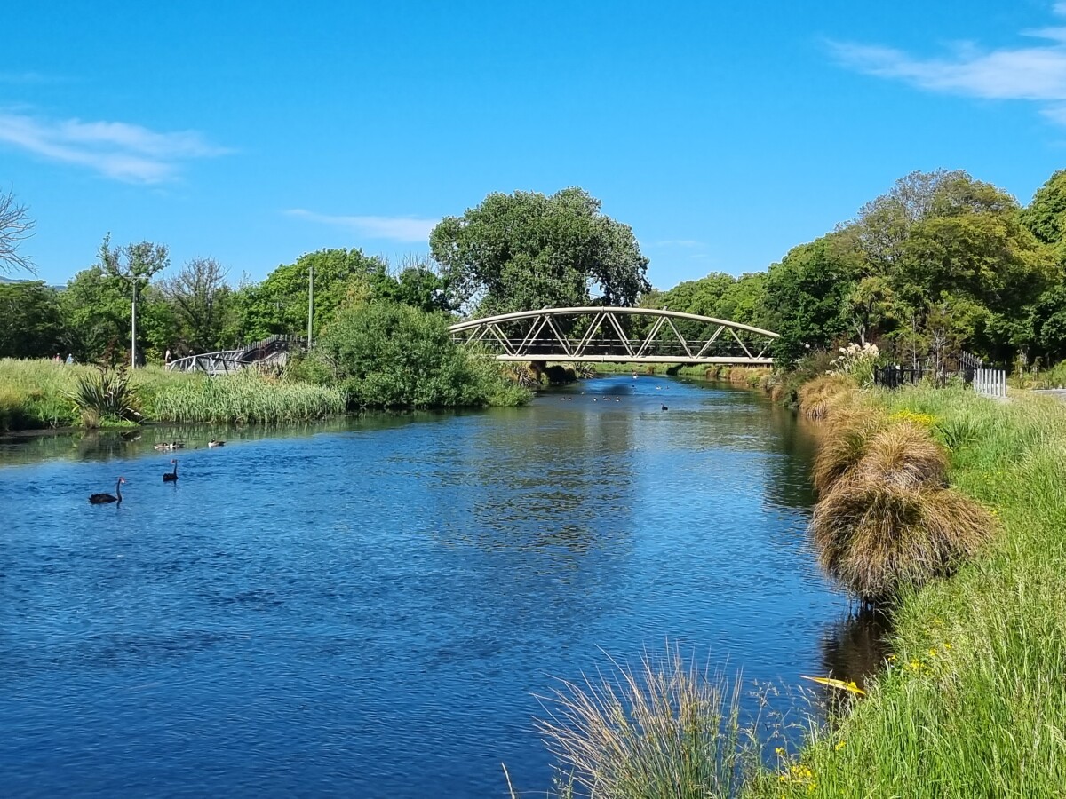 Medway footbridge taken from River Road. Rebuilt after the earthquake.