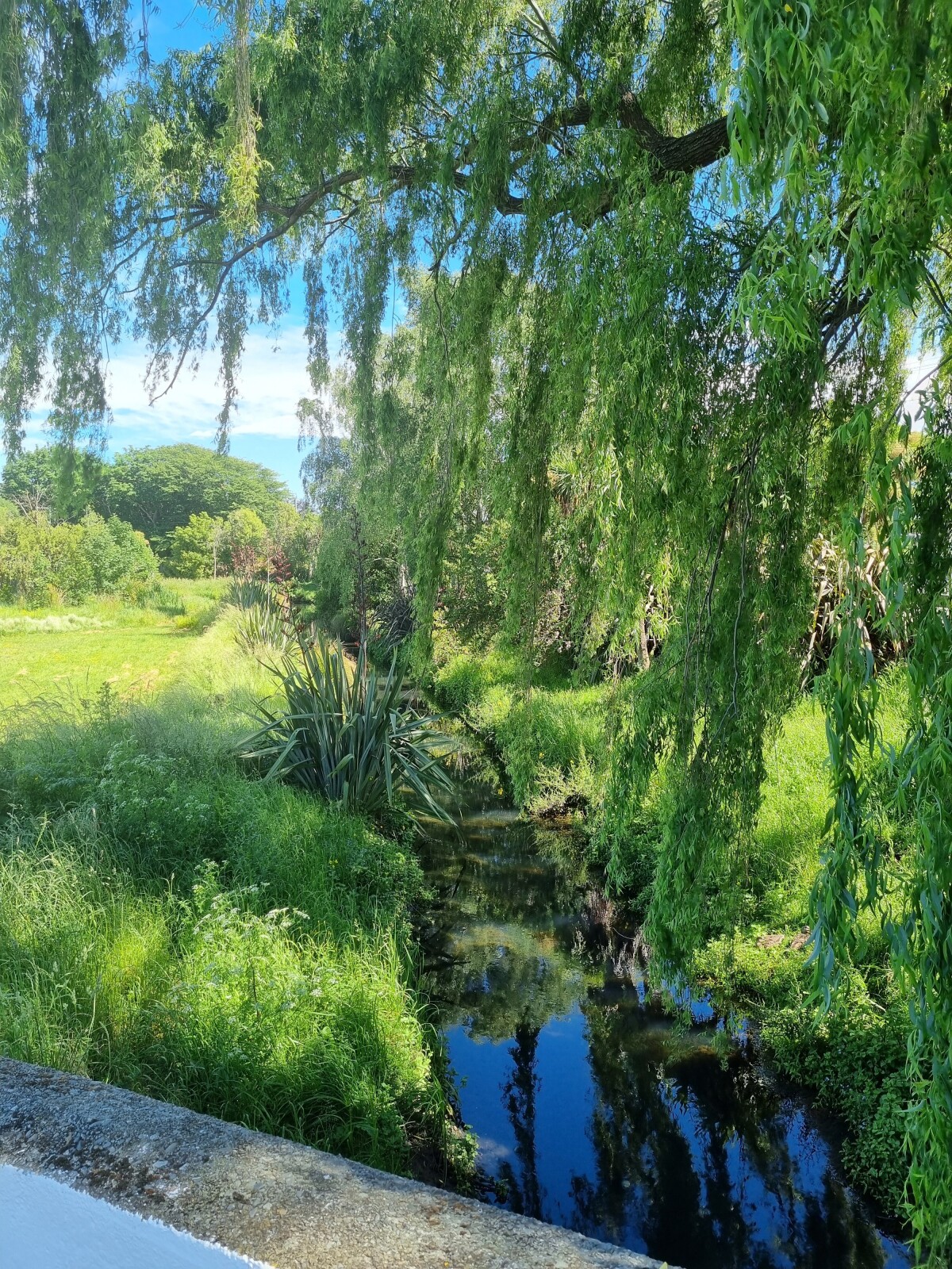 Photo taken from the small bridge over a tributary to the Avon River that runs alongside Banks Avenue.