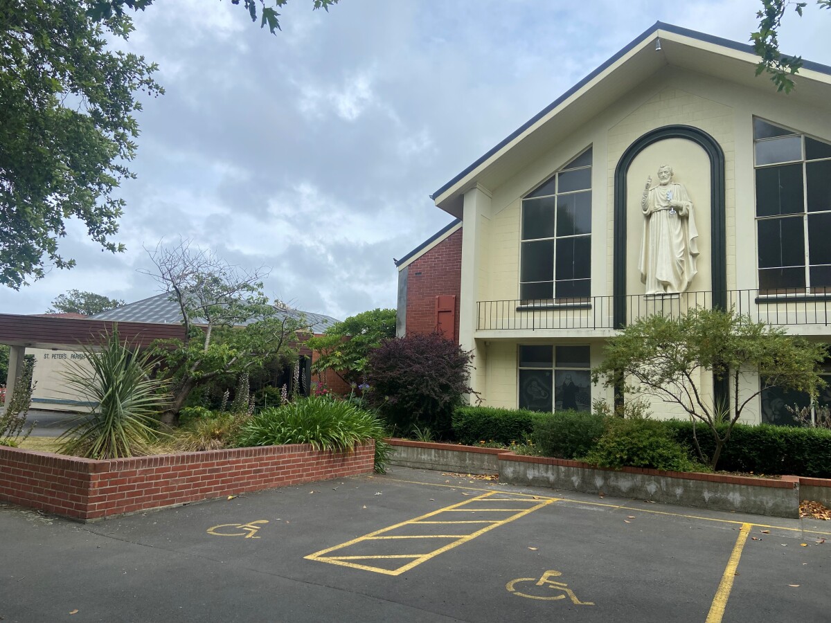 View of the statue of St Peter on the exterior of the Catholic Church on Fisher Avenue in Beckenham.
