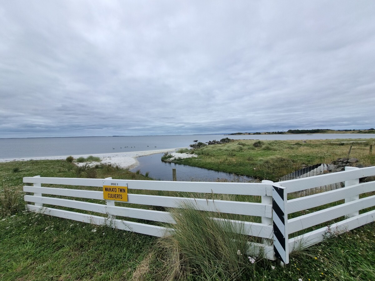 Waikato Twins Culvert on Airbase Road, with Te Whenga Lagoon in the background