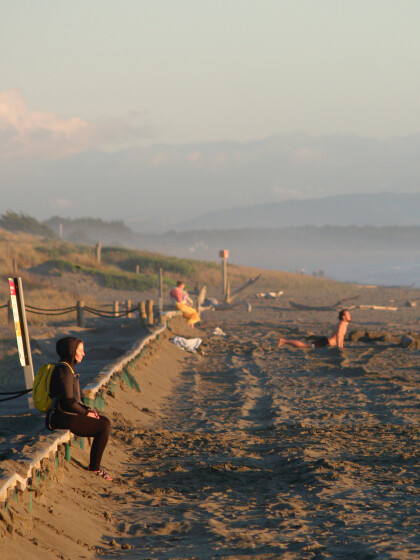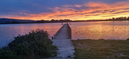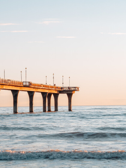 Dissected peach-hued sky seen from beneath New Brighton Pier as ...