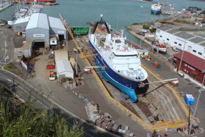 Fishing trawler ‘Ocean Dawn’ blocked up in Lyttelton Port ...