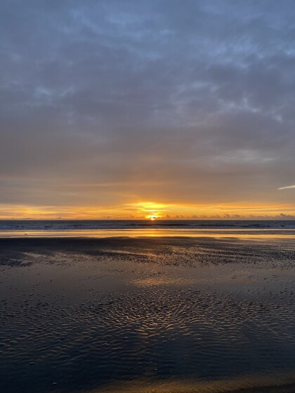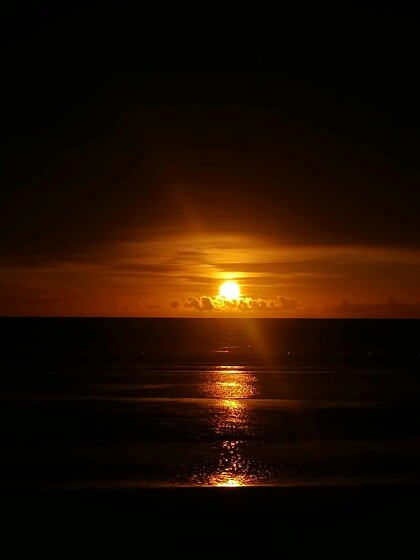 Sun climbs over the sea at Woodend Beach, beckoning a new day.