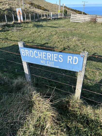 Sign for Brocheries Road, named after one of Akaroa’s early ...