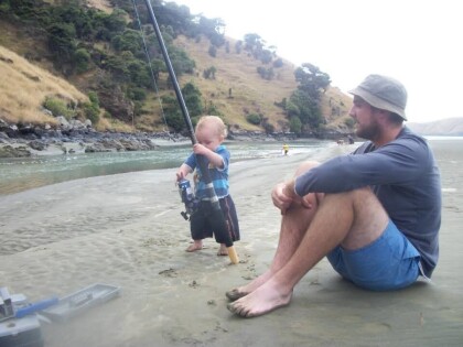 Children looking seaward from Godley Head