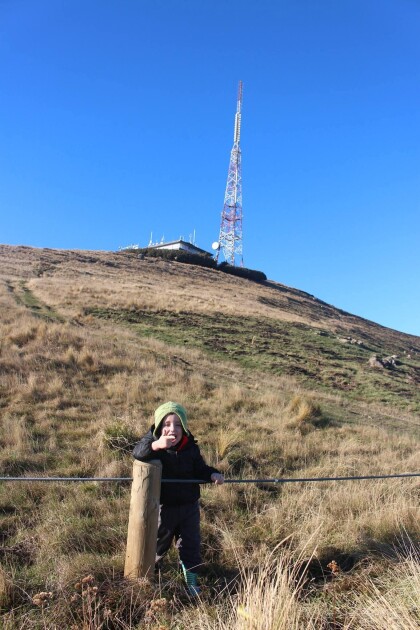 Portrait of a young child standing at the base of the Sugarloaf ...
